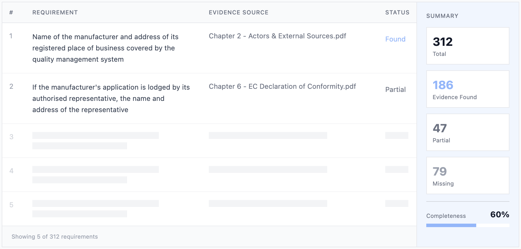 We structure technical documentation against applicable requirements and produce a complete, traceable, auditable review record.